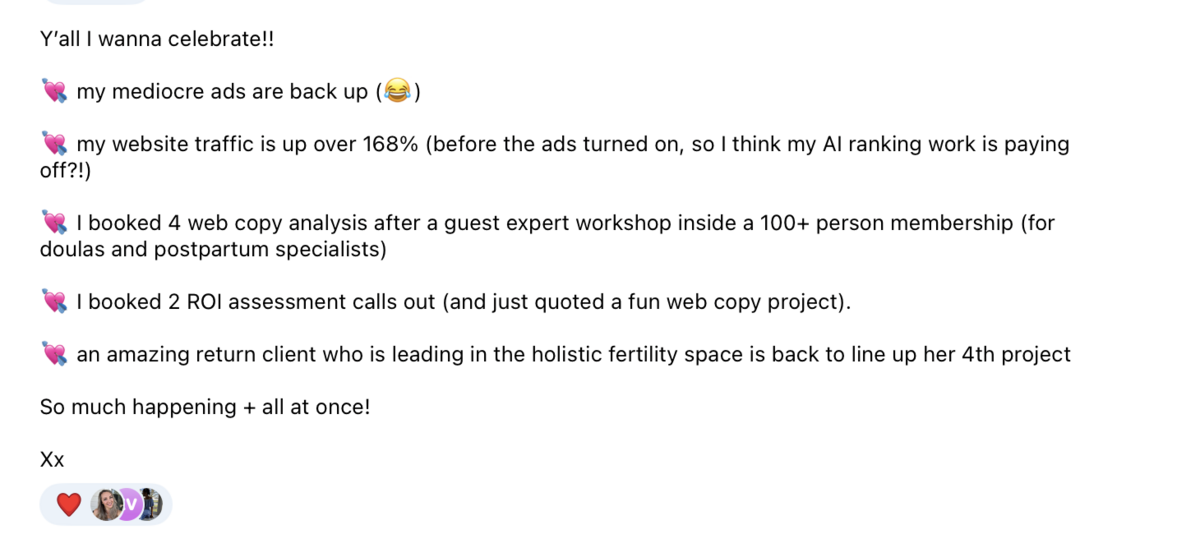 Ashley's class helped me identify my target client and then tell their story to speak to them. My copy has improved so much. Whether it's just for social media posts or for my website, I'm much more comfortable speaking TO my ideal client. This is an incredibly important part of marketing that I was lacking.