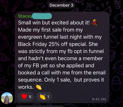 You will learn and grow with other like-minded believers who are jumping into the online world or are ready to make some serious waves. Get access to 1x monthly application calls, 1x monthly Fb/IG Ads calls, 2x monthly Q+A calls, 1x monthly bible study, 1x monthly CEO planning calls, the signature course, community groups + more.